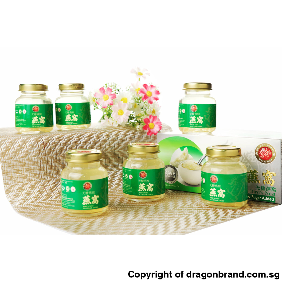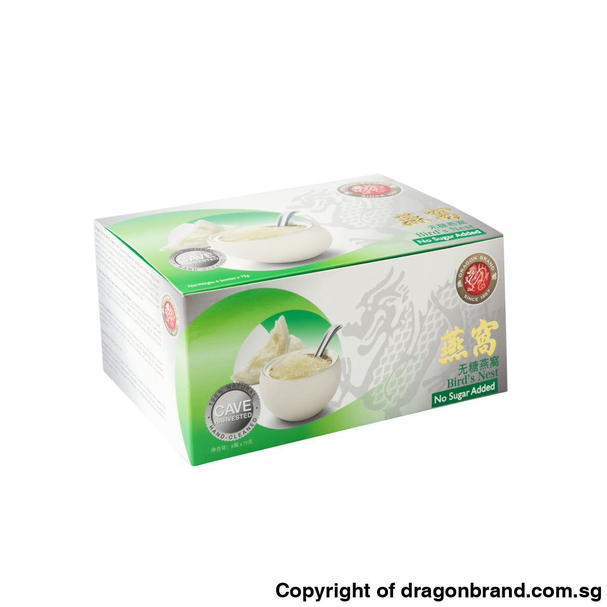 Dragon Brand Bird's Nest with No Sugar Added is prepared using good quality bird's nest. Our specially developed manufacturing process, which is HACCP certified, is safe and hygienic. The product is vacuum-sealed in a glass bottle and put through an advanced process for sterilization entirely by heat, without any artificial preservatives, colouring or flavouring.