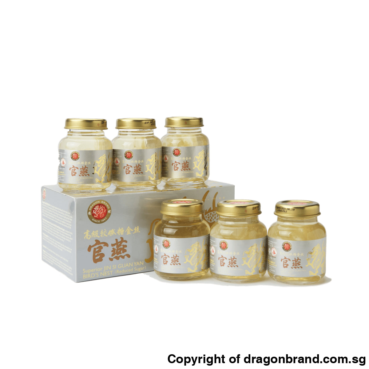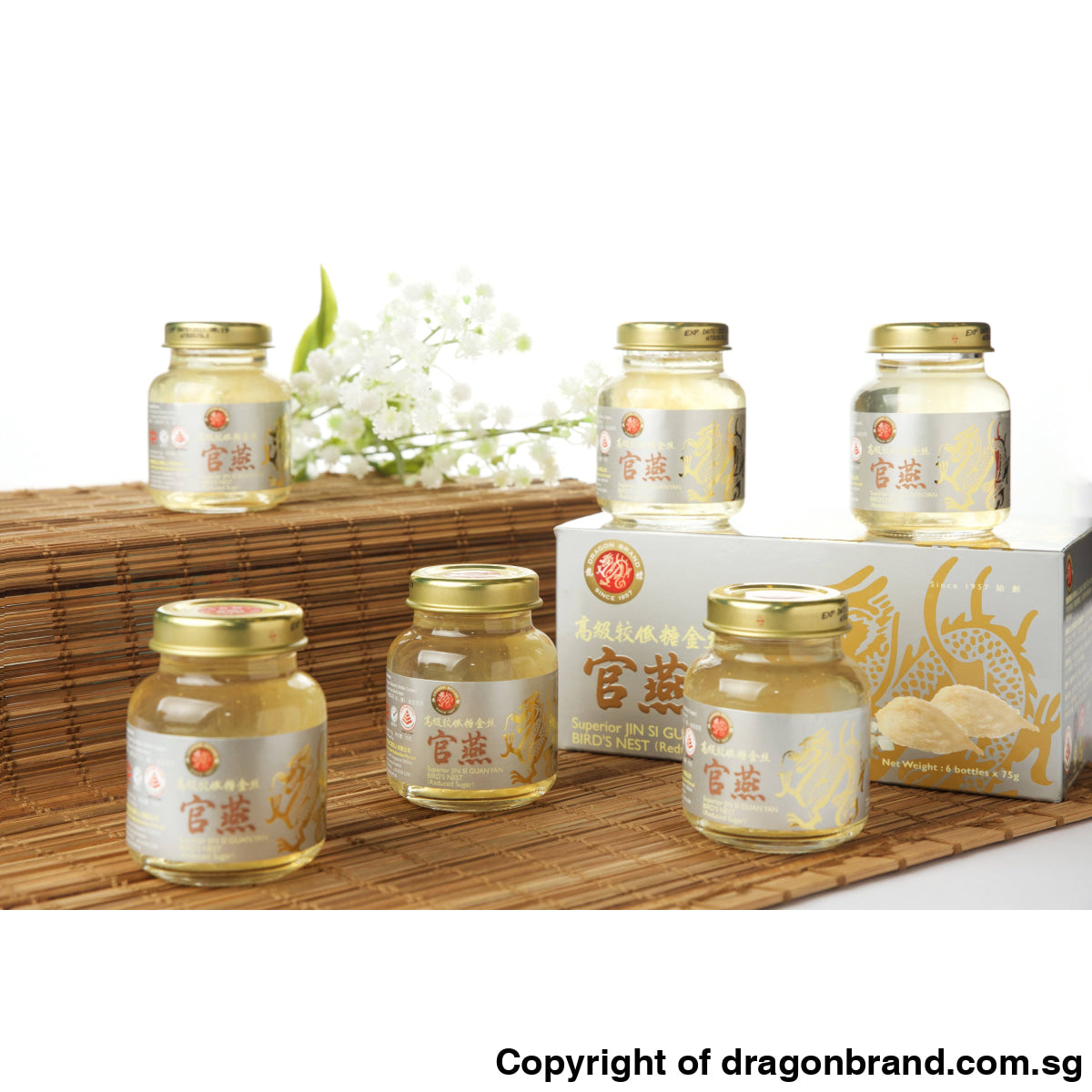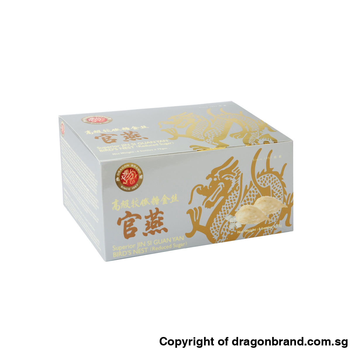 Dragon Brand Superior Jin Si Guan Yan Bird's Nest (Reduced Sugar) is prepared using quality Bird's Nest and refined rock sugar. Our specially developed manufacturing process, which is HACCP certified, is safe and hygienic. The product is vacuum-sealed in a glass bottle and put through an advance process for sterilisation entirely by heat, without any artificial preservatives, colouring, or flavouring.