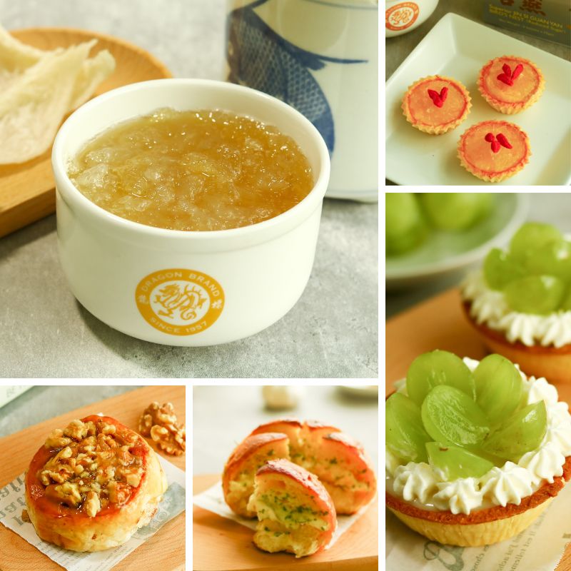 House specialties include bird's nest desserts, tarts, cinnamon rolls, korean buns, croissants and more.