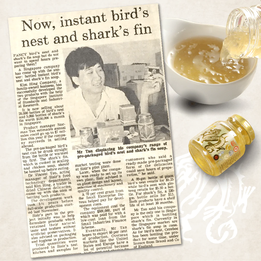 In 1986, Mr Norman Tan, son of Mr Tan Kim Pheow and current Director of Kim Hing Food Industries, created the world's 1st bottled bird's nest.