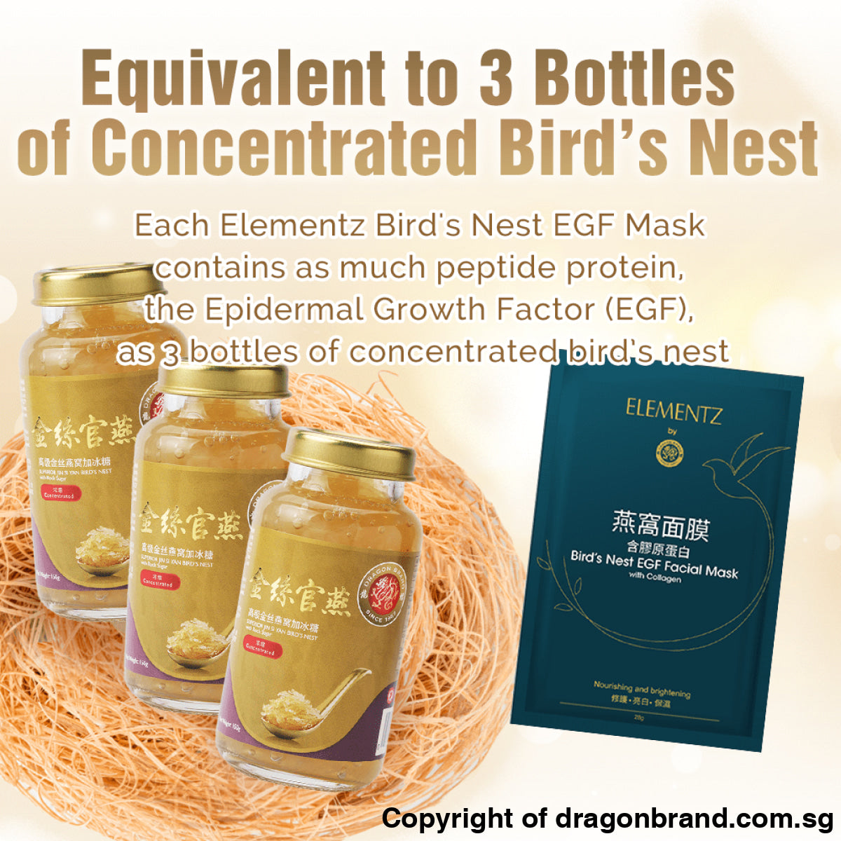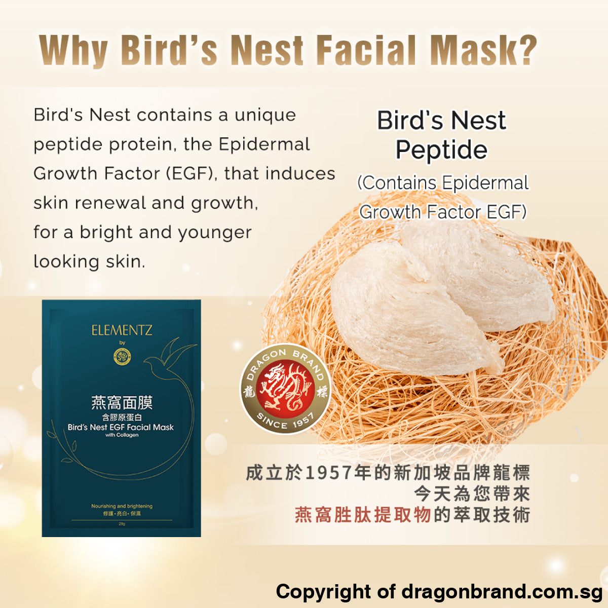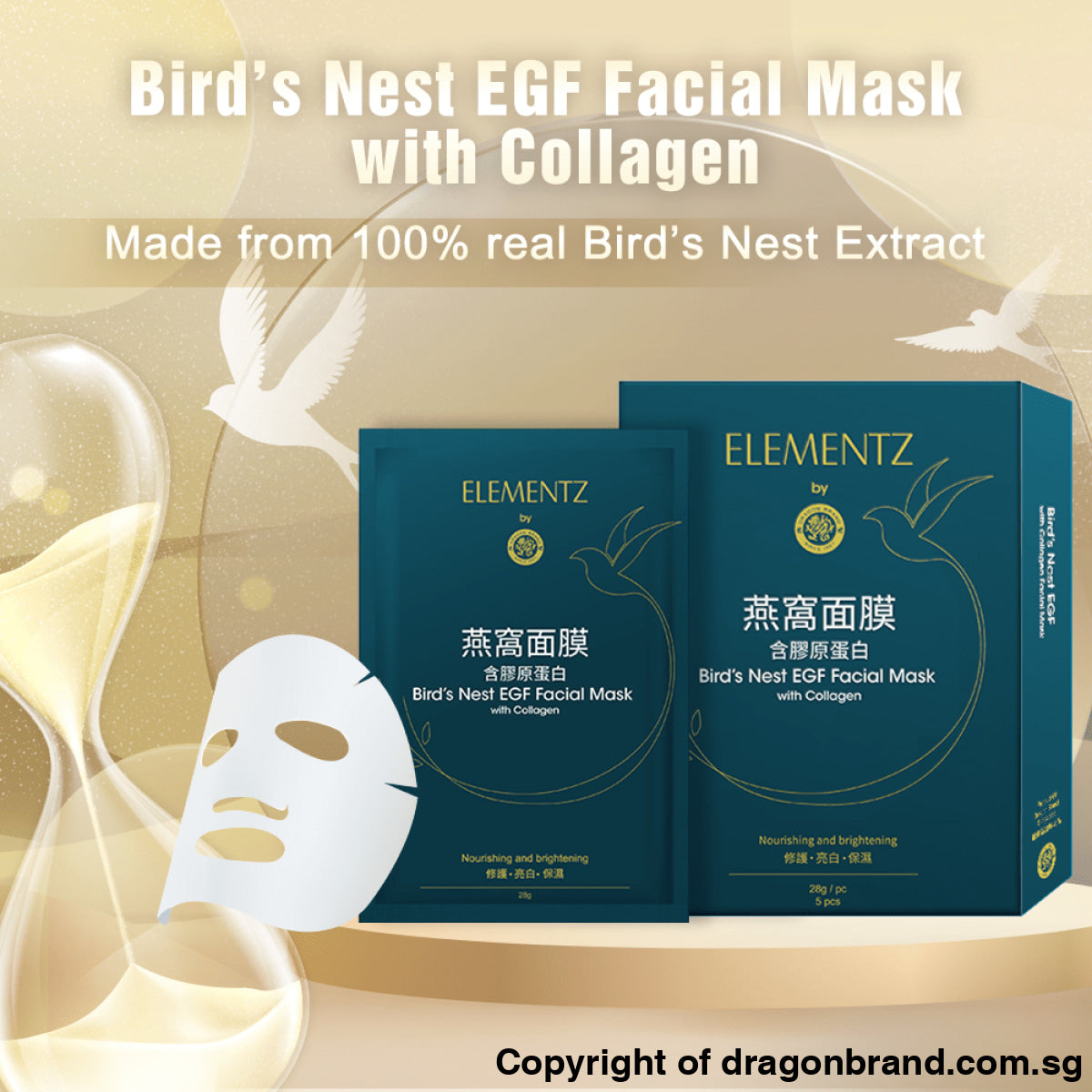 This Bird's Nest EGF Facial Mask with Collagen is made from 100% real Bird's Nest extract which is rich in Epidermal Growth Factor(EGF), a peptide protein that stimulates cell growth, thus effectively repairing and rejuvenating your skin, reducing fine lines and dark spots while replenishing essential nutrients.
