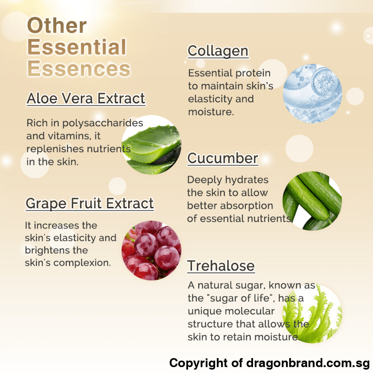 Function: Reduce dark spots and wrinkles. Hydrates and brightens skin.